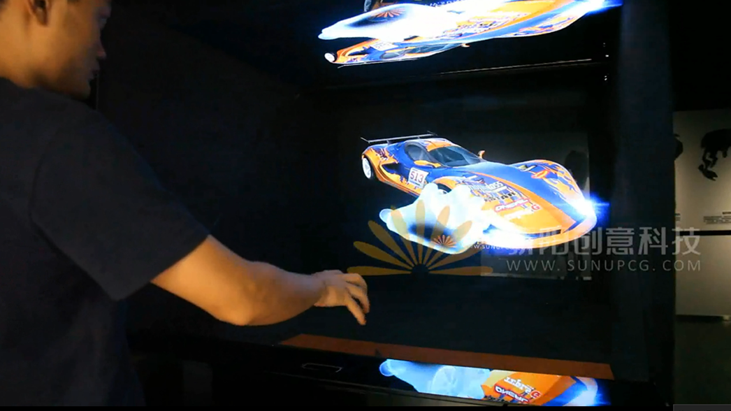 觀眾通過手勢動(dòng)作模擬鼠標(biāo)控制環(huán)境,利用手勢識(shí)別設(shè)備,實(shí)現(xiàn)對虛擬物體的互動(dòng)控制,包括翻轉(zhuǎn)、點(diǎn)擊、查詢等操作。展項(xiàng)科技感極強(qiáng),觀眾不需要接觸設(shè)備就能與畫面進(jìn)行互動(dòng),系統(tǒng)識(shí)別每根手指的動(dòng)作來模擬操作過程。